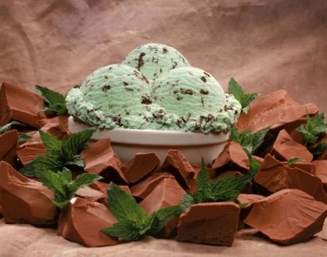 Inghetata de menta si ciocolata este una dintre cele mai gustoase combinatii. Gustul dulce al fulgilor de ciocolata si aroma mentolata fac din aceasta inghetata un desert pe placul oricui.