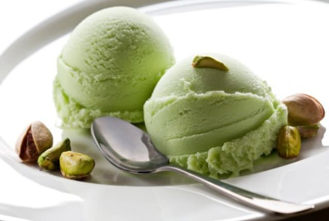 Inghetata de fistic este racoroasa si usor de preparat. Are un gust bun, potrivit pentru zilele calde de vara. Se serveste cu sos de ciocolata si menta proaspata.